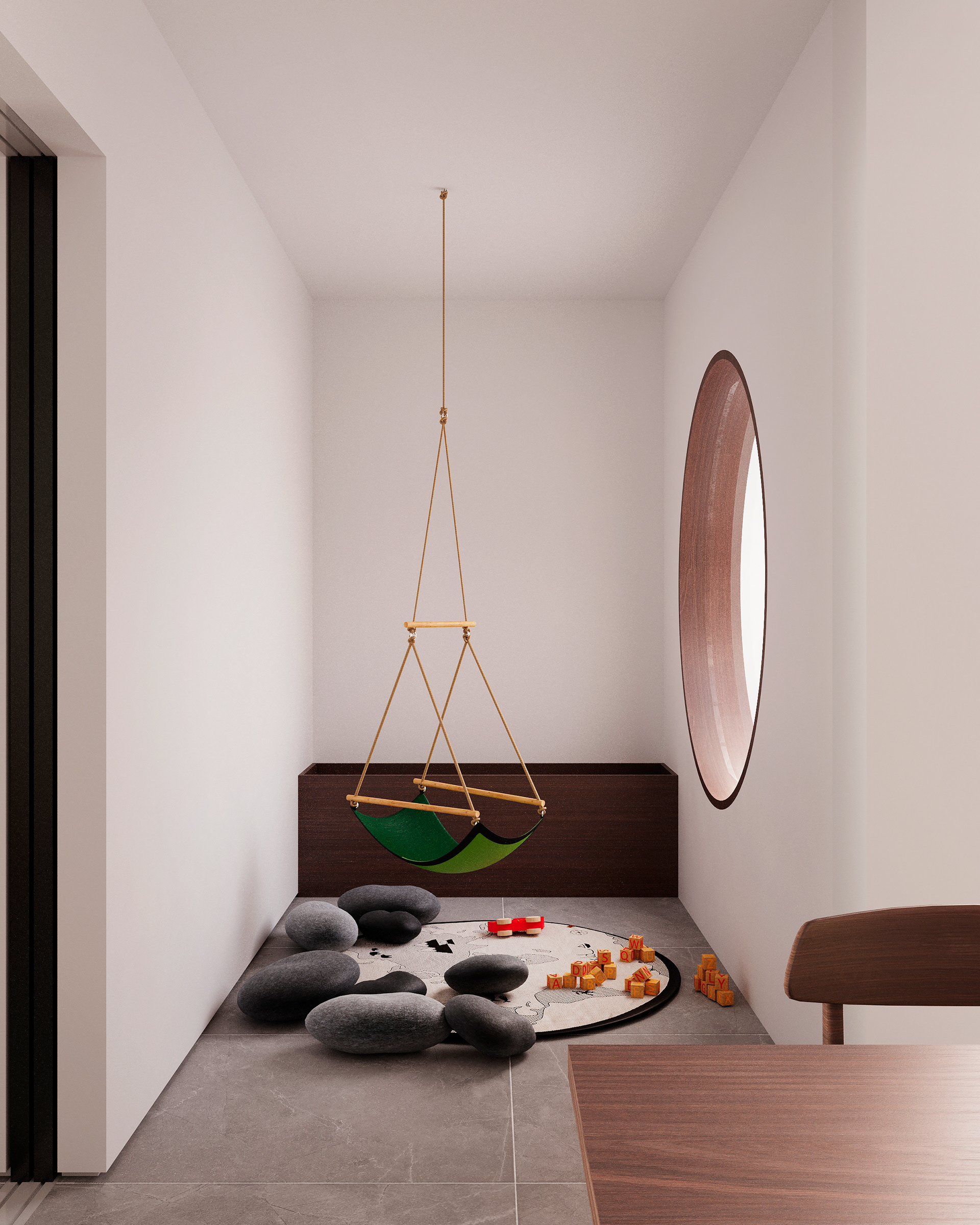 terceiro dormitório versátil; ora sala de tv e jogos, ora quarto de hóspedes.
