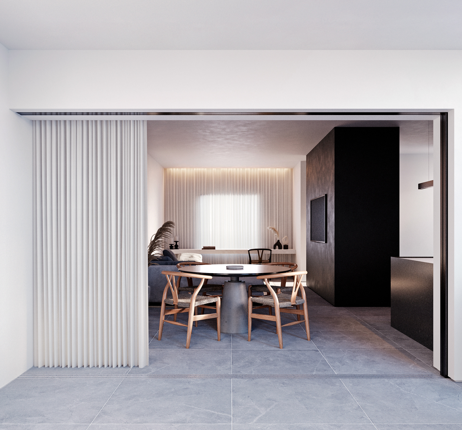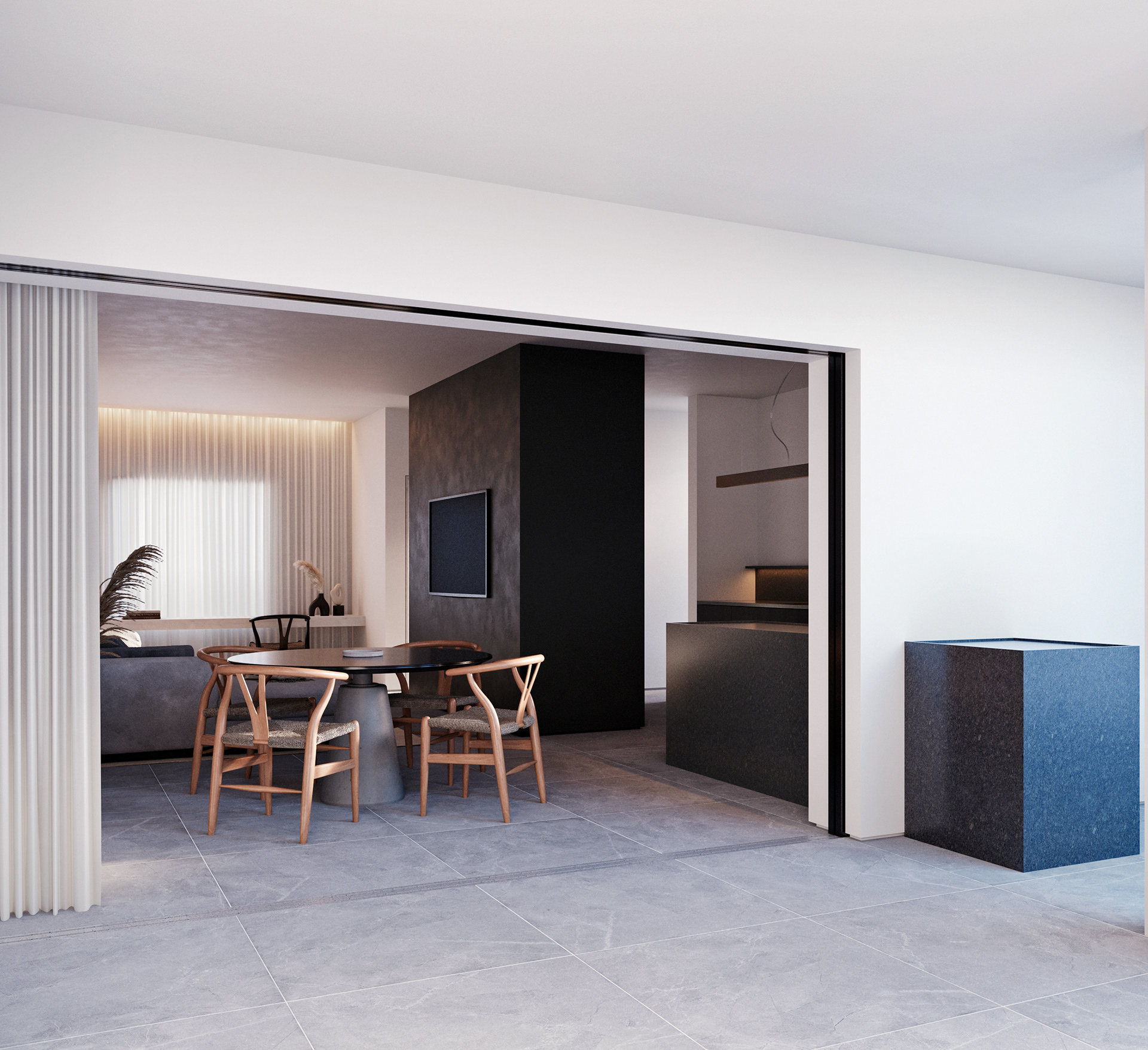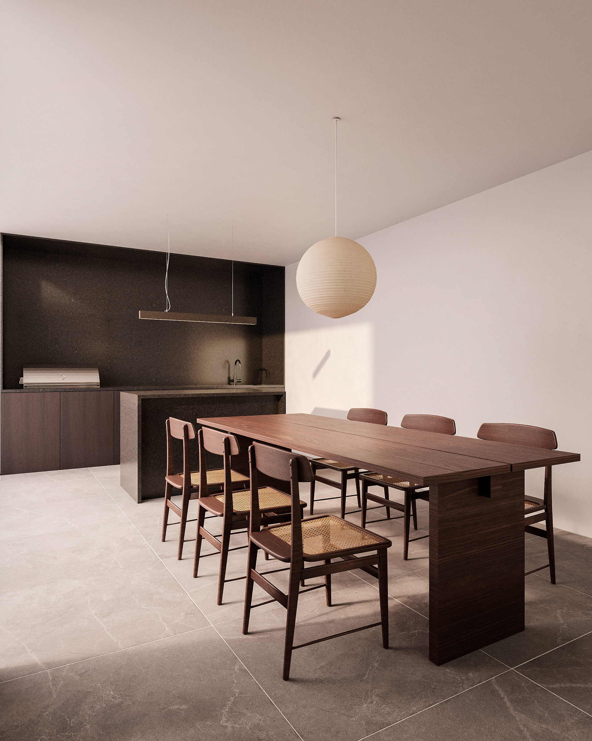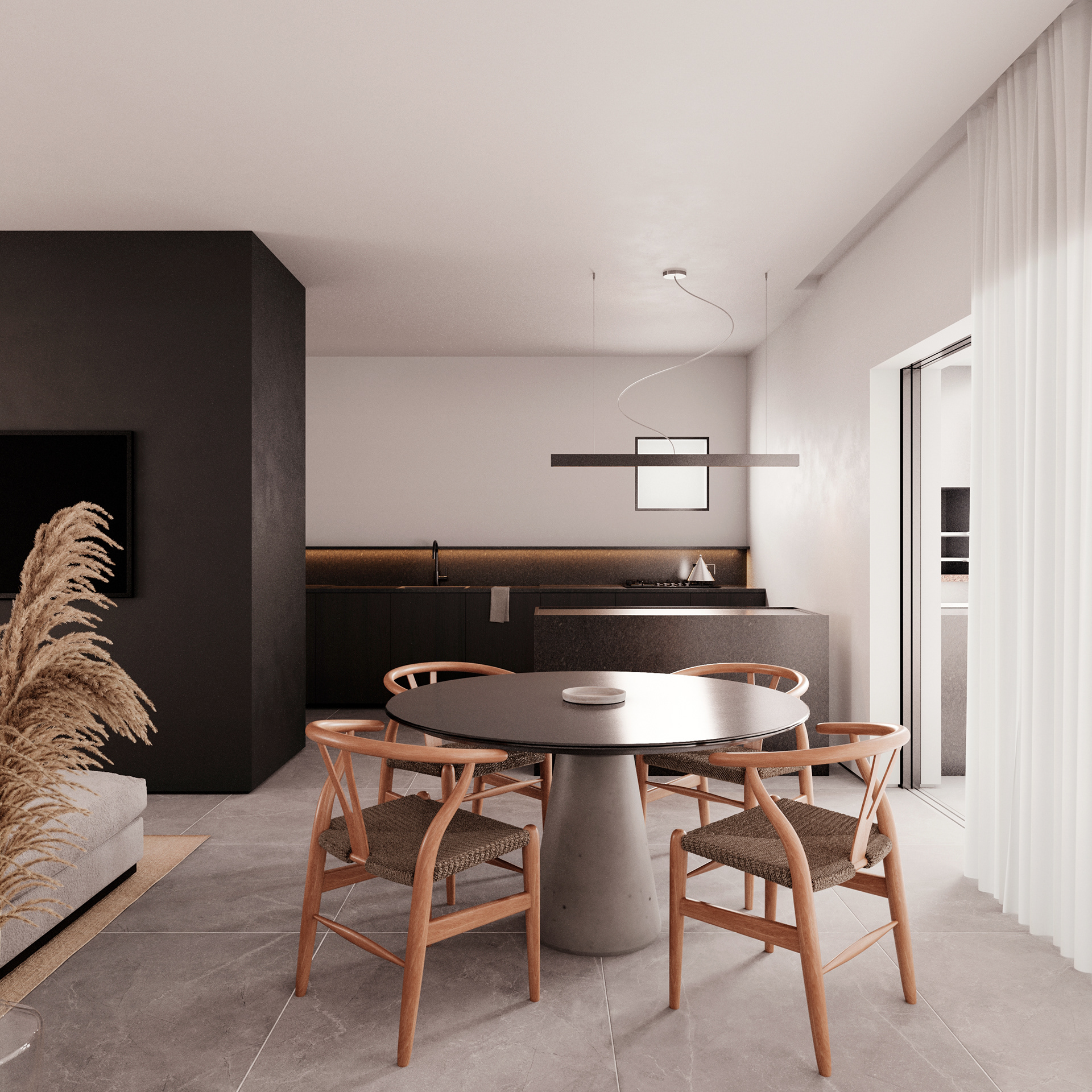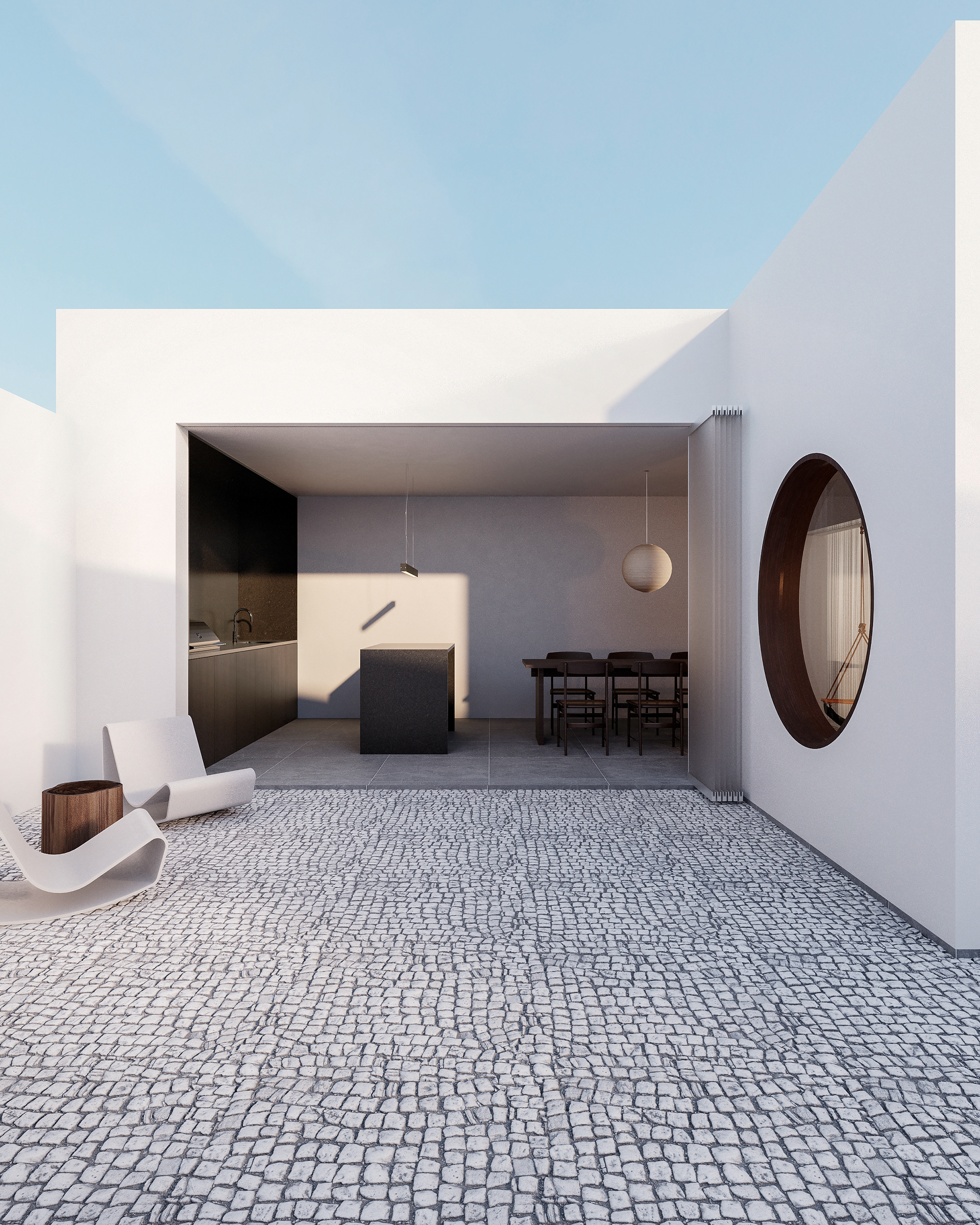 pequenas modificações nas alvenarias, integrando cozinha, estar, jantar e gourmet para ampliar a espacialidade sufocante da casa.