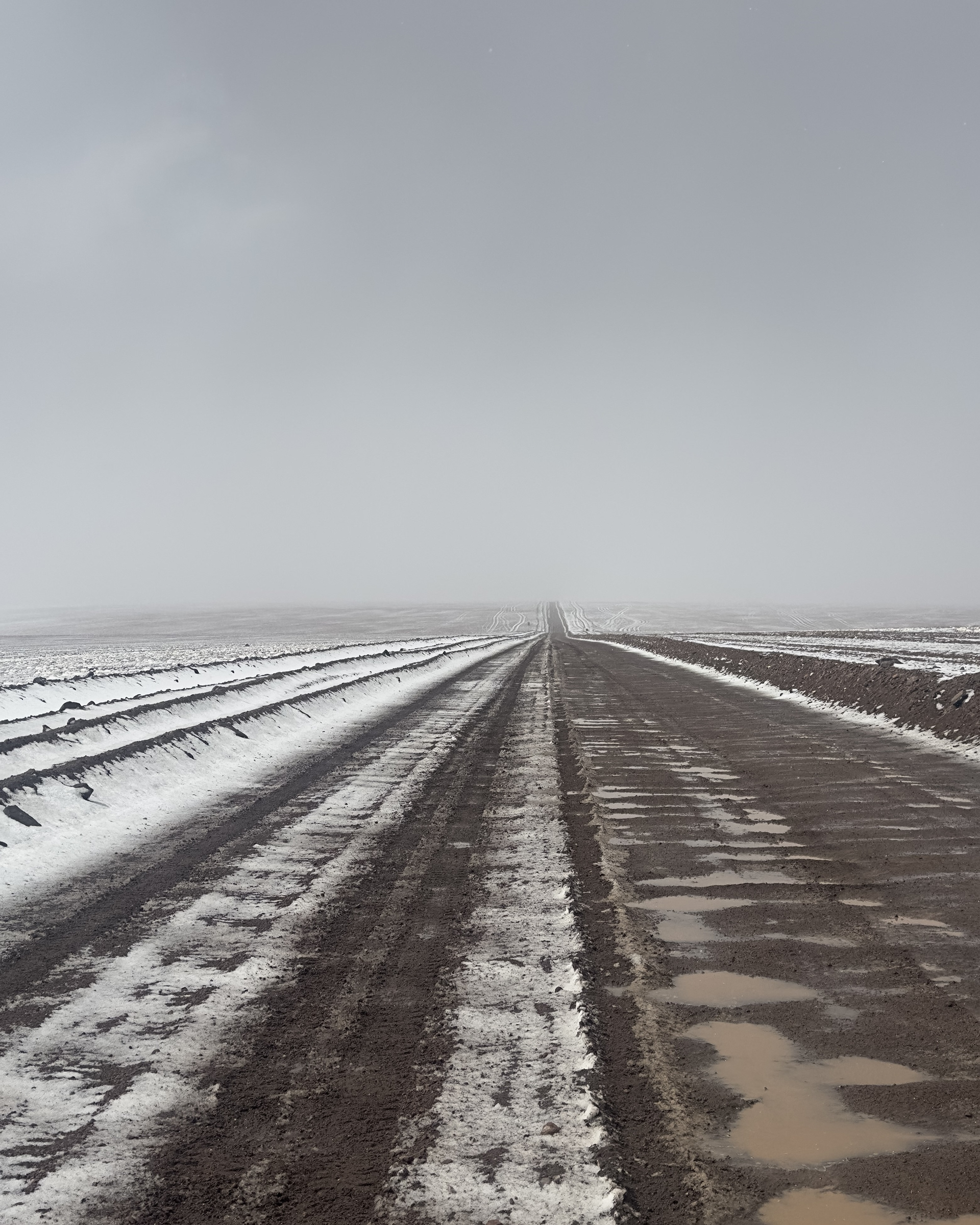 Em alguns casos, se completa com vilarejos, construções inacabadas ou já abandonadas e indústrias voltadas para a exploração de recursos. São pequenas diante das imensidões “lineares” que as contornam.